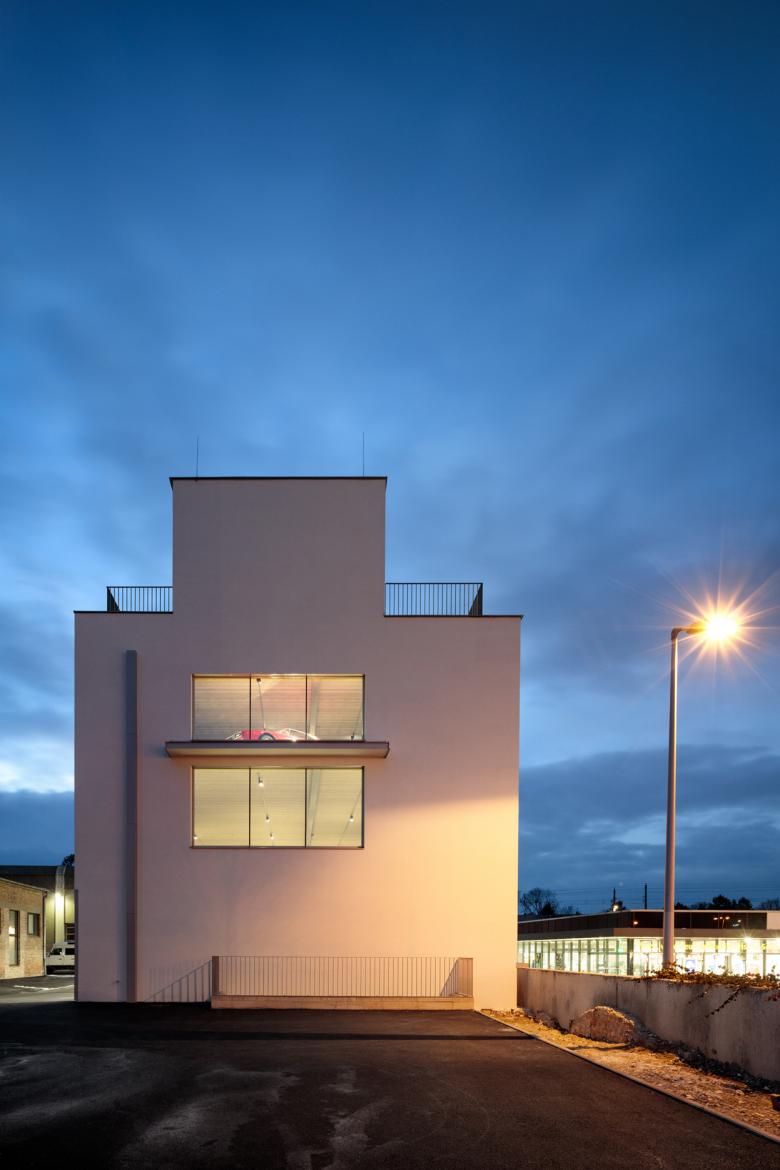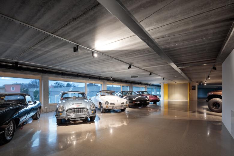 Parkhaus für Oldtimer | Bei diesem Projekt dreht sich alles um Oldtimer-Fahrzeuge. Diese haben einen hohen finanziellen, aber auch kulturellen Wert. Für Ihren Erhalt benötigt es eine adäquate Unterbringung mit speziellen Rahmenbedingungen. Diese bietet, auf dem Areal der ehemaligen Fritze-Lacke-Fabrik in Wien-Hetzendorf, das „Classic Depot“ auf gesamt rund 5.250m2. Das Gewerbeobjekt vereint rund um das Thema Oldtimer folgende Funktionen: Tiefgaragenebene für 50 Fahrzeuge, im Erdgeschoß Werkstatt, Anlieferung mit Drehscheibe und PKW-Aufzug, Fahrzeugaufbereitung und Spenglerei/Lackiererei. Im Obergeschoß 1 und 2 befinden sich die Einstellflächen für die Fahrzeuge. Diese Flächen sind beheizt, belüftet und die Fassade mit UV-Schutzgläsern sowie außenliegendem Sonnenschutz ausgestattet. Ergänzt werden die Einstellflächen durch einen 3-seitig verglasten Besprechungs- bzw. Seminarraum mit Blick auf die Fahrzeuge. Der gesamte Bereich ist zum einen zutrittsgesichert und videoüberwacht, zum anderen aber für die Einsteller rund um die Uhr geöffnet.