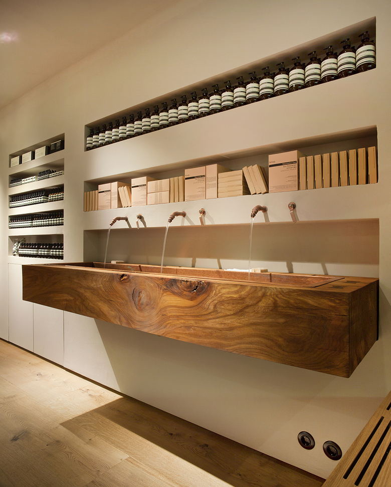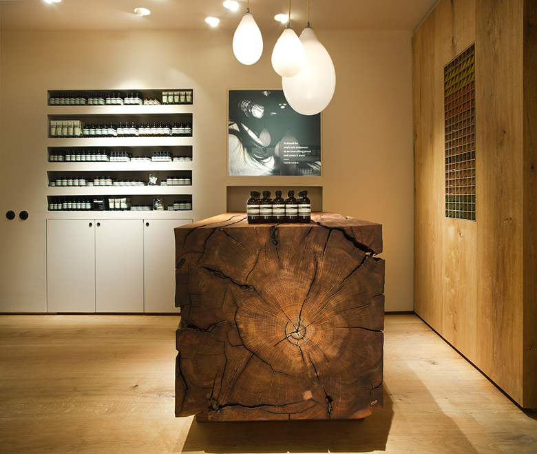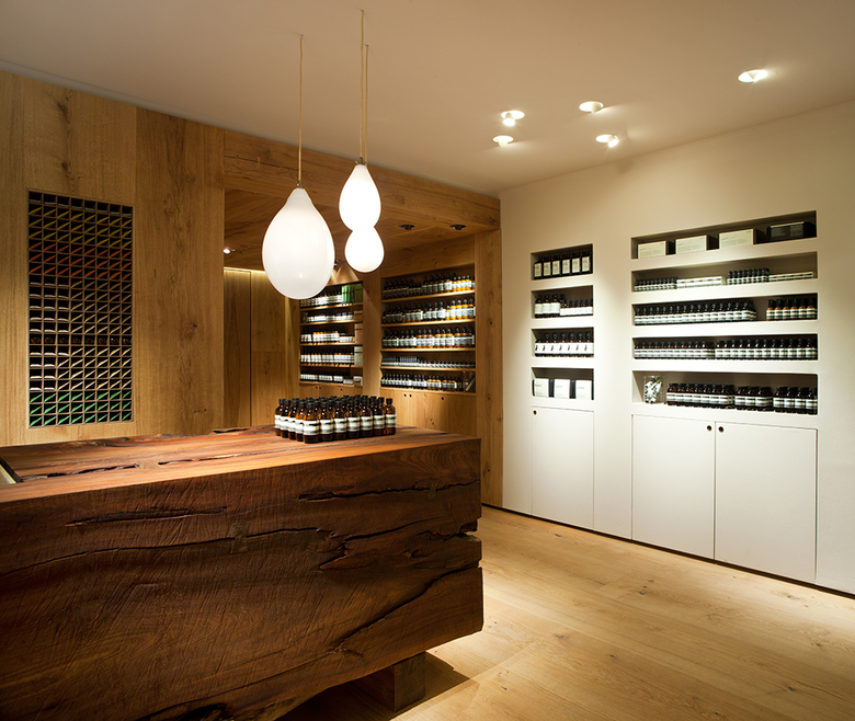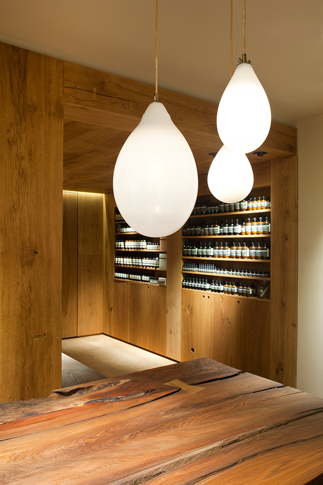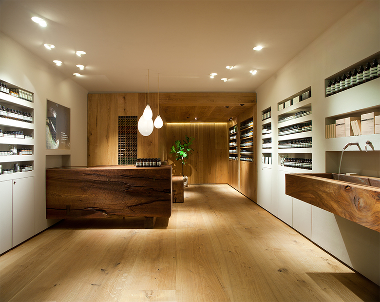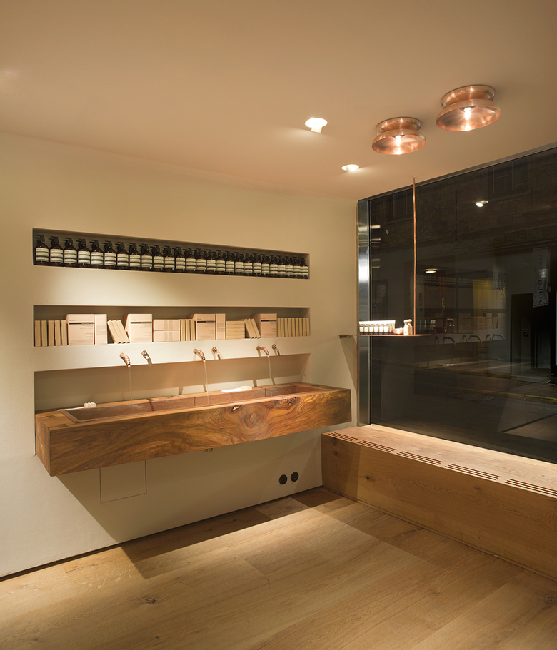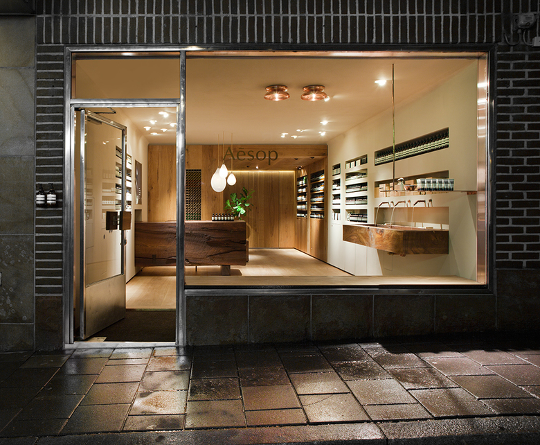 Aesop Bibliotekstan is Aesops first Swedish signature store and also the first store in the Nordic countries. For Aesop Bibliotekstan we have worked with three primary sources of reference, the philosophy of Jun'ichirō Tanizaki and the films of Ingmar Bergman and Lars von Trier. The essay “In praise of Shadows by Tanizaki is a book of reference for Aesop as well as the book from where we borrowed the name of our office. In this essay Tanizaki praises the traditional Japanese architecture and aesthetic and brings forwards the qualities of materiality, patina and tactility. Our brief also included the ambition to be local and the reference to the movies of Trier and Bergman was a way to pin down the character of the space and the view of what kind of Swedish the store should “speak”. To us this was an attitude allowing us to turn away from the mainstream “Nordic design” tradition.