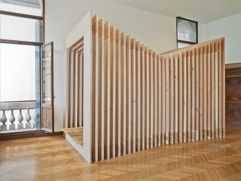 Passage of Wood by In Praise of Shadows Arkitektur, Dinesen and Zimmerei Beer of Werkraum Bregenzerwald was created for Wallpaper* Handmade and presented in Milan during Salone del Mobile 2014.