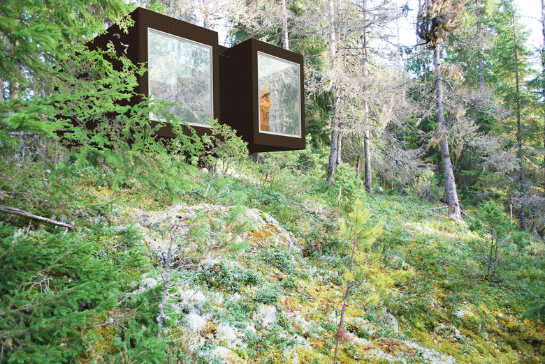 The expression of the buildings will be contemporary, but in scale and through the choice of material they will relate to the local building traditions. The structure of massive wood will be exposed on the inside. The character of the interior will be sparse but comfortable. The hotel-cabins will be standing on thin steel tubes leaving the ground practically untouched. Only a very limited number of trees will need to be taken down.