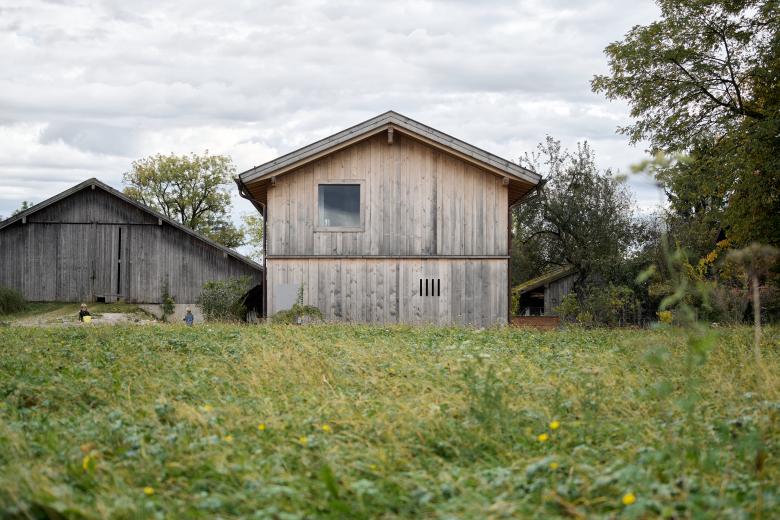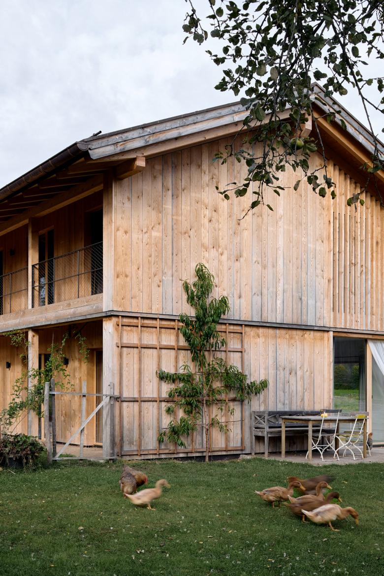 'Barn House' was inspired by the local farm building vernacular in Bavaria. This family home is honest and authentic, sustainably built from wood from the homeowners' forest. It was important to me to include the surrounding farm context in the photographic documentation, as it has a significant influence on the design, including capturing the chickens roaming wild during the shoot.