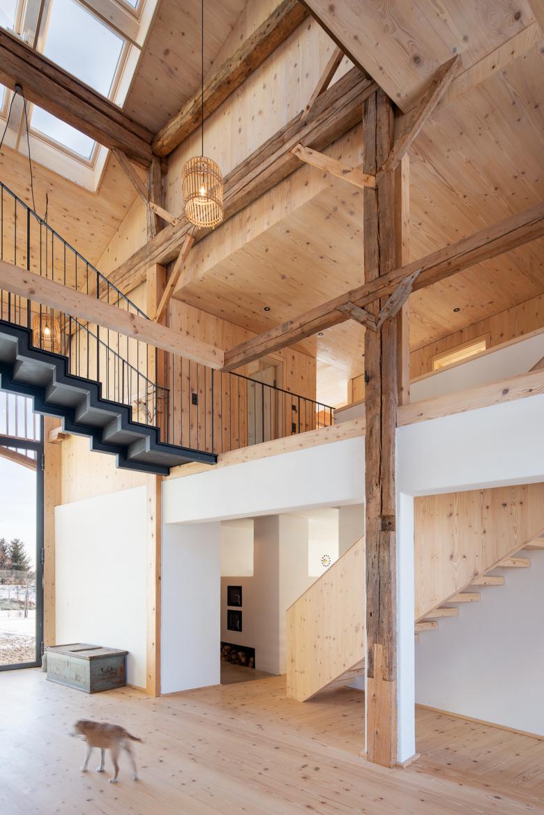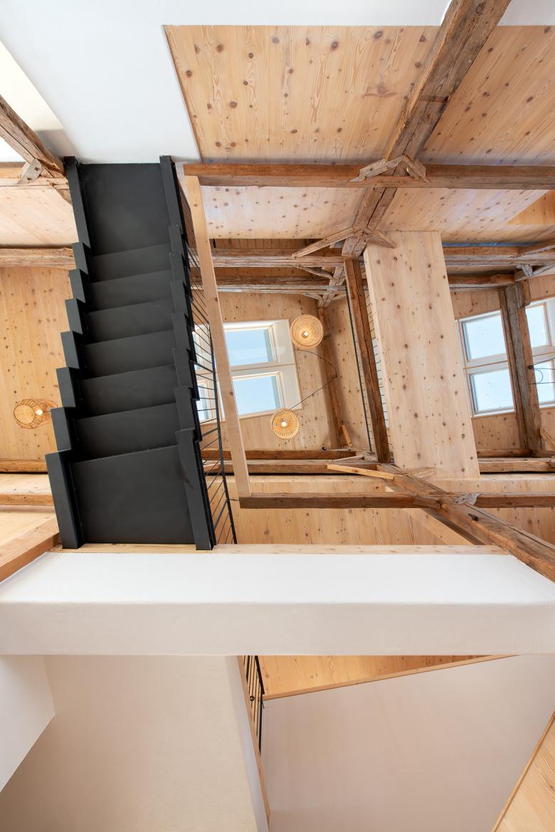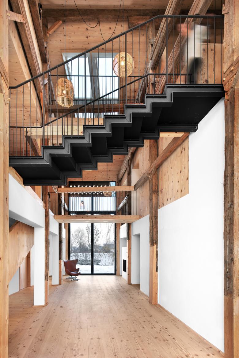 This existing Bundwerkstadel is a beautiful traditional building with intricate details throughout its facade. The remodelling of the interior has a contemporary feel yet respectful and sensitive to the former architectural style. The layout is a labyrinth of connecting spaces, steps and bridges, a fun-house of sorts.