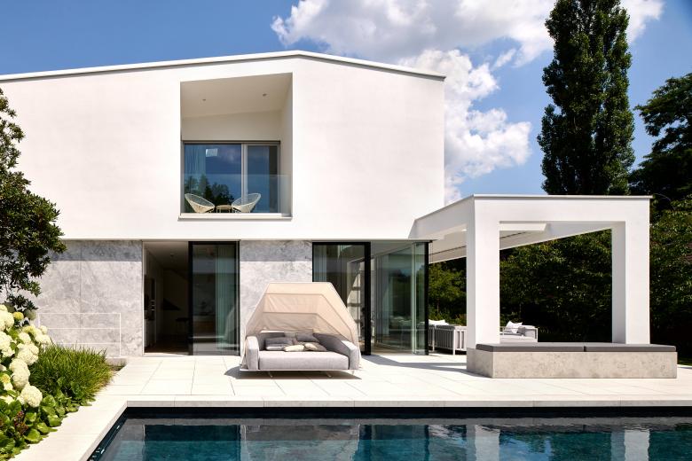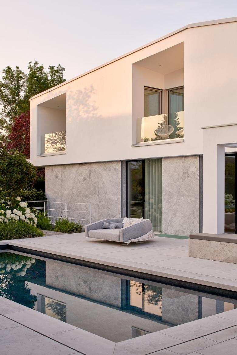 The main house and pool outhouse together create and enclose a private and modern outdoor space to swim and enjoy. I hung out at this beautiful home from dawn till dusk. By allowing plenty of time to get a feel for the thoughtfully designed architecture, I could capture the spaces when the light was most favourable. I particularly liked the light grey marble used as cladding for the exterior at ground level and integrated throughout the interior. I could do with another day without the camera to spend poolside.