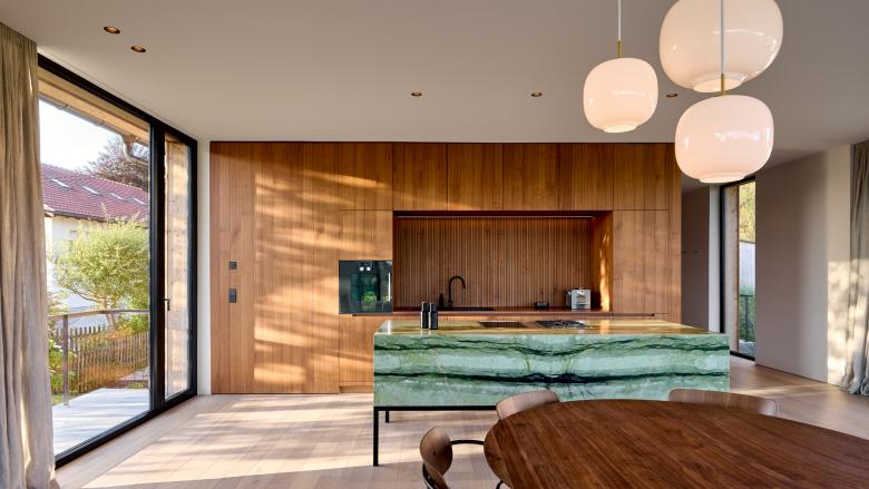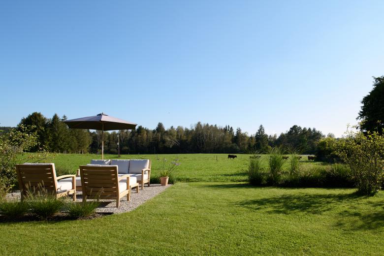 While I was waiting for the golden hour to commence, I watched the cows peacefully passing by at the bottom of the garden. The interior is rich in texture and natural materiality. Soon I was presented with a scene soaked in warm golden sunlight as it penetrated the interior. The timber-clad house has the appearance of gently resting on the ground, which was emphasised by choosing to photograph late summer when the grass is long enough to communicate the concept of floating.