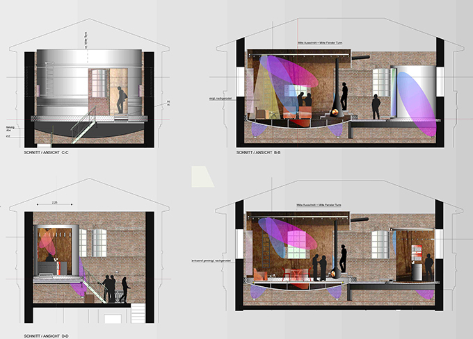 Der Kraftversorgungsturm auf dem Gelände des alten Schlachthofes wird das Kernstück des neuen Geschäftssitz der P3-Group in Aachen. Das unter Denkmalschutz stehende Unikum wurde liebevoll renoviert und erstrahlt nun in neuer Funktion. Als Entree und Meeting-Bereich wird der Turm von 2 schlichten Neubau-Kuben flankiert in denen die Büros untergebracht sind.