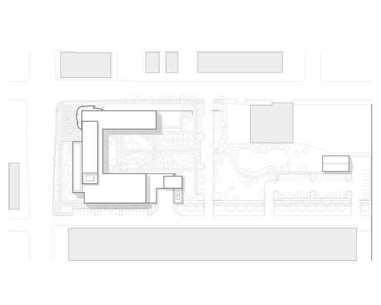 The image of the campus is that of a welcoming and modern organization, dedicated to improving the lives its clients. A landscaped courtyard creates an inward focus appropriate for activities requiring privacy and protection, such as daycare and housing.