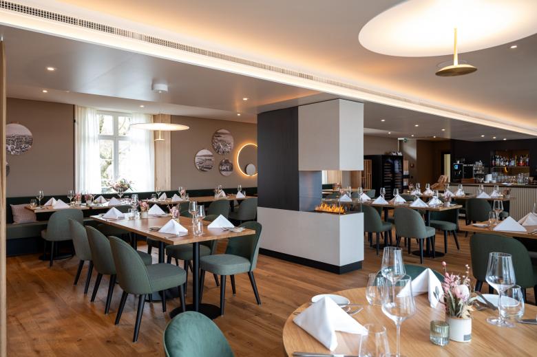 Inspiriert von der umliegenden Natur und der Historie des Gebäudes haben wir das Restaurant KUNOS sowie die Turmbar im Dachgeschoss im ehrwürdigen Klostergebäude neu gestaltet und in ein zeitgemässes Design überführt.
