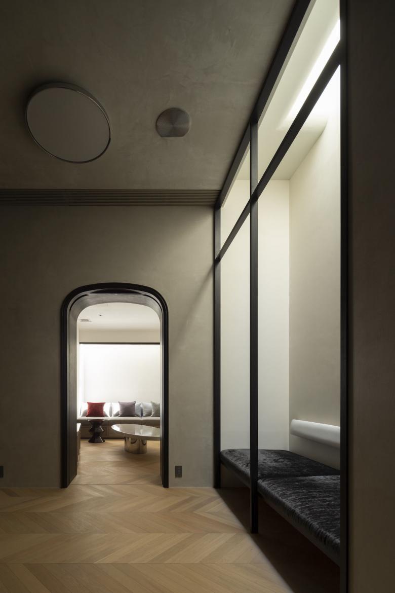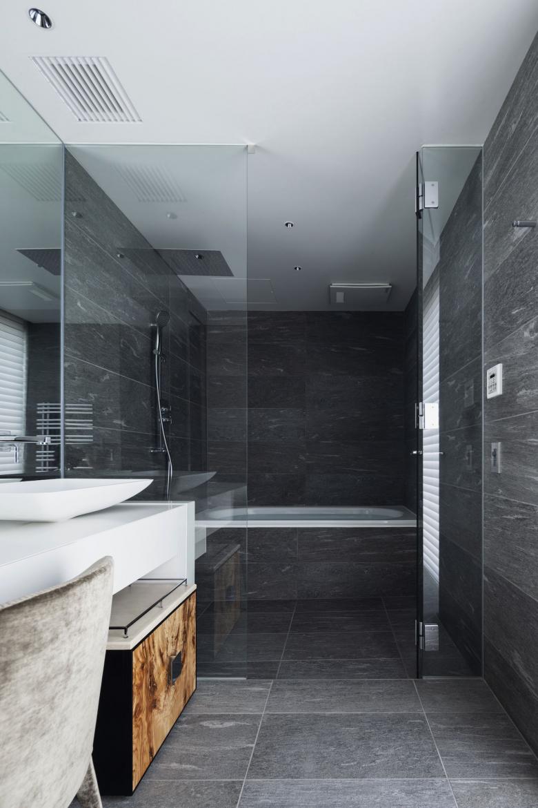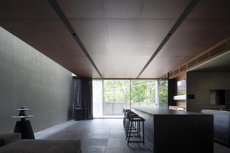 日常と非日常の間 都内に建つ別邸である。施主からの要望は唯一「自宅にないもの、足りないものをモダンな空間で構成して欲しい。」ということであった。