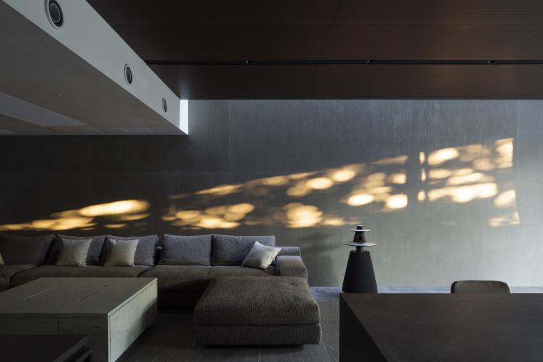 そこで、建物の外観からインテリア、家具、ファブリックまでをボーダーレス、かつ等価に扱いデザインすることで新たな環境表現を試みることにした。日頃から世界中を旅し、上質なものや空間に触れている施主は、建築やインテリアに対する造詣が深く、その要求のレベルは非常に高い。その要求に応えるため、インテリアコーディネーターやテキスタイルデザイナー、照明デザイナーに頼ることなく、空間を構成する全てを私一人で緻密にデザインすることにした。