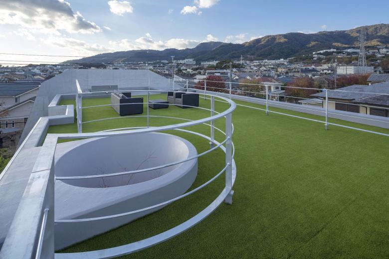 2Fから北側斜線ラインに形づくられたトップライトを見ると六甲山の山並みが切り取られ、市中にいながら力強いこの建物にも負けない、大自然のダイナミズムが感じられる各部屋ひとつひとつも細部までこだわりつくり上げた。