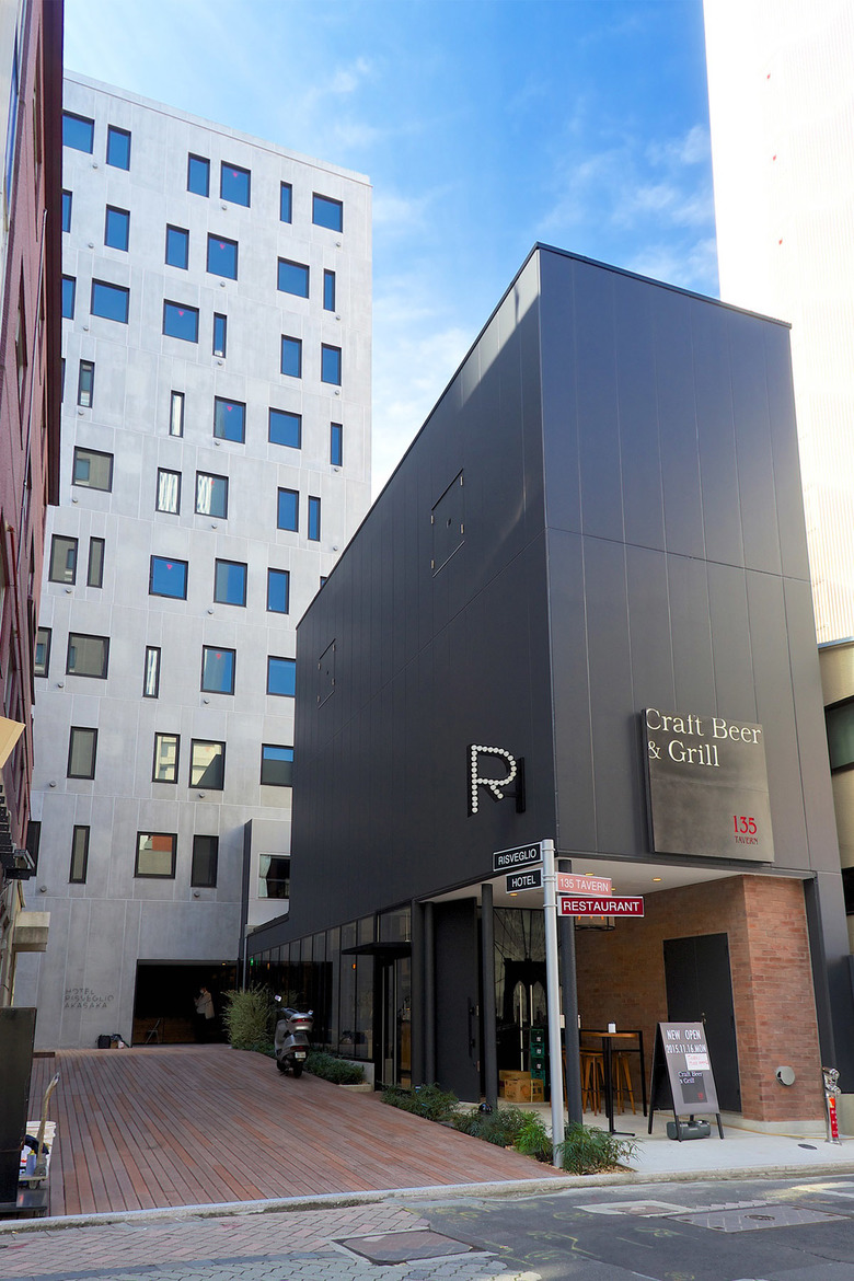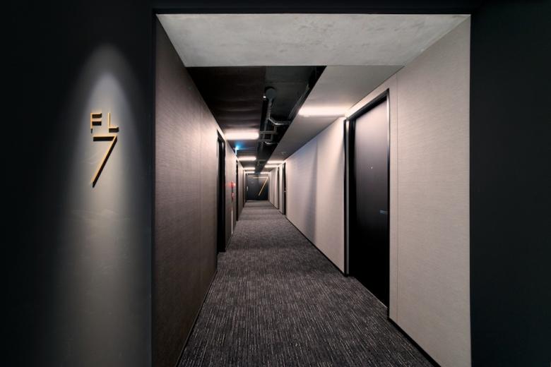 赤坂の中心部に建つビジネスホテルである。敷地はみすじ通りに面した旗竿敷地であり、街並みへのアピールにはいささか不利な状況だ。ターゲットはアートやデザインに感度の高い人々、それから海外からのゲスト。