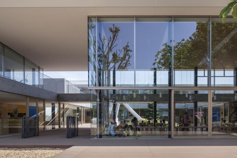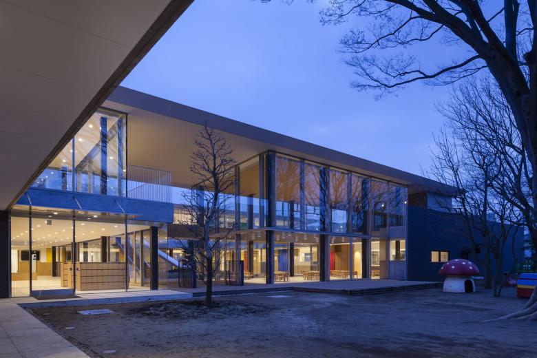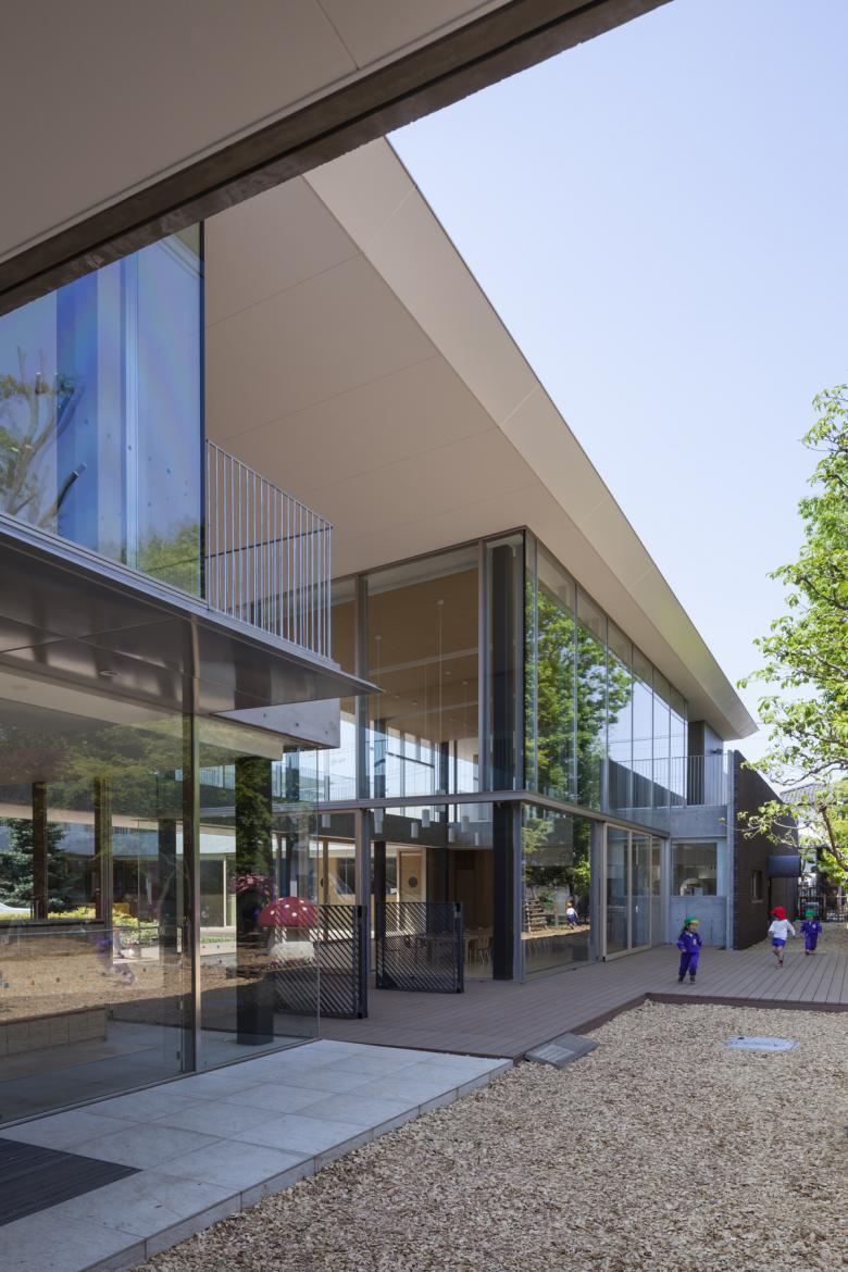 この度の保育園の計画においては,単なる保育園の園舎という建物を超え,四季折々の自然の醸し出す風景を感じ取ることができ,日々の天候や,大陽や雲の動き,鳥のさえずりなどといつもともにある感性豊かな人間の成長が促される場所として,長く人々とともにあり続けられる総体としての環境の創出をこころみた。