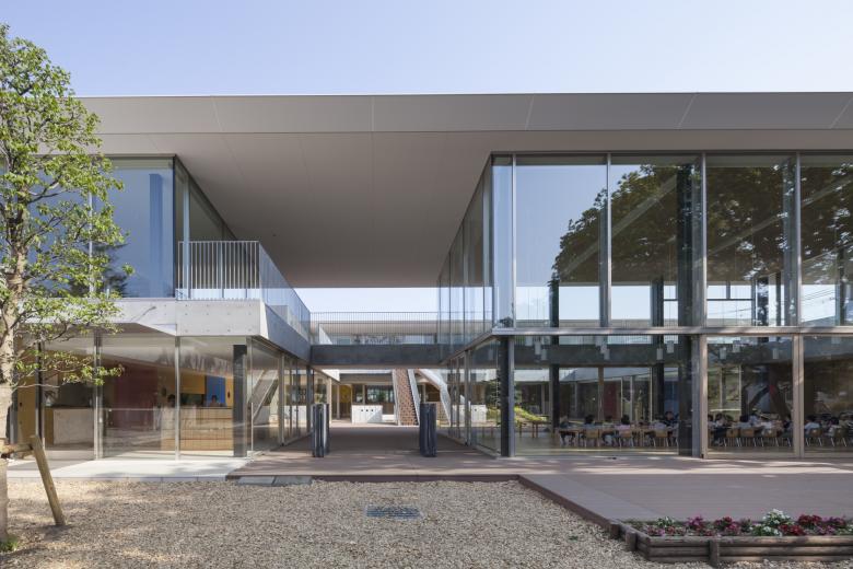 東村山むさしの認定子ども園の建設地は東京の西,雑木林のひろがる狭山丘陵にさしかかる住宅地にあり,周辺には,かつての雑木林がところどころ残されており,人間の生活圏と自然が入り交じる風景が身近に感じられる場所である。東村山むさしの幼稚園が開園から40年を迎えることを機に,保育園を増設し認定子ども園として新たな環境の整備をすることになった。