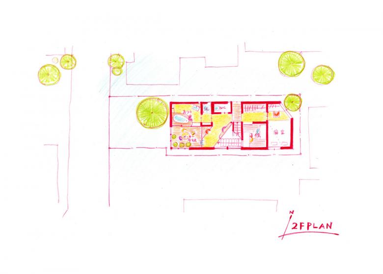 『わざわざ別荘やリゾートに行かなくても、家で毎日リフレッシュできるような、楽しい家が欲しい!』というご要望をいただき、設計が始まったのですが東京のど真ん中。周囲はかなり住宅密集地。敷地は25坪で、建てられる面積も広くはありません。