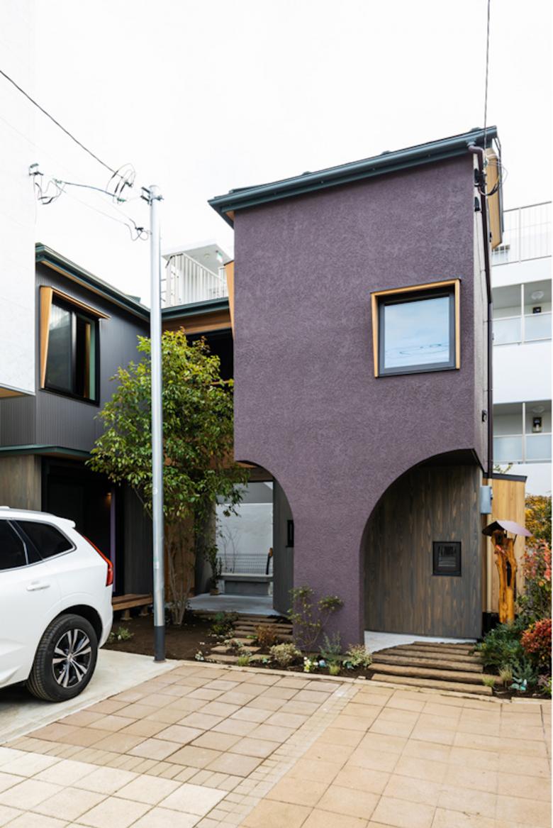 近隣商業地域と一種低層住居地域の狭間にある敷地で、 裏面は高いマンションが建つ旗竿敷地。