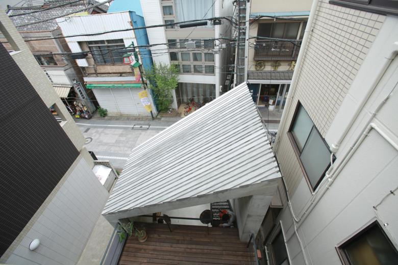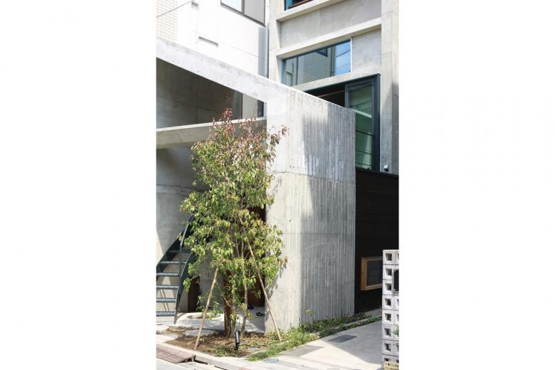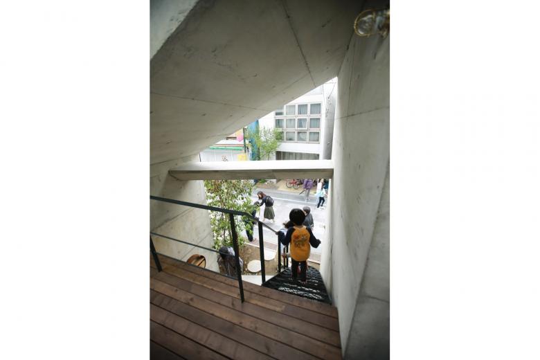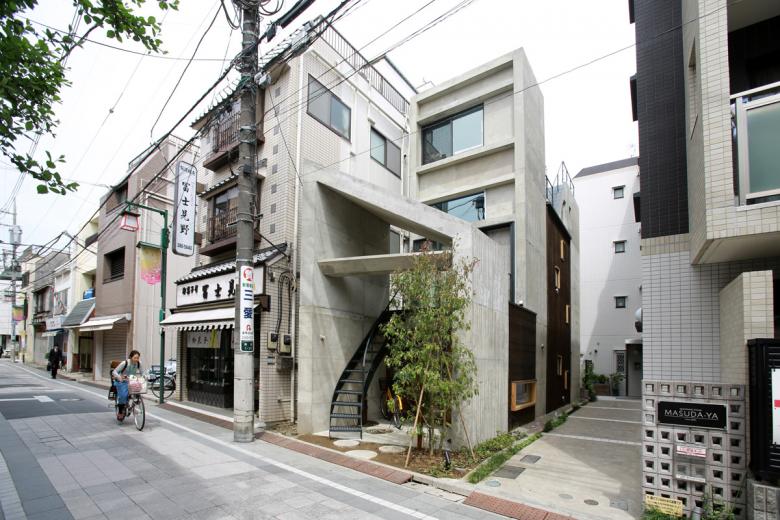 前面道路より。2階まで直接アプローチできるため、家全体が街に開かれたようないろんなイベントに利用されています。