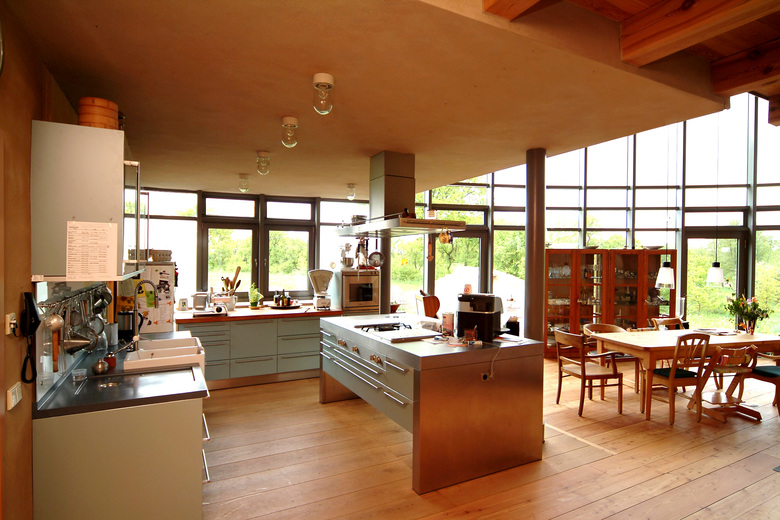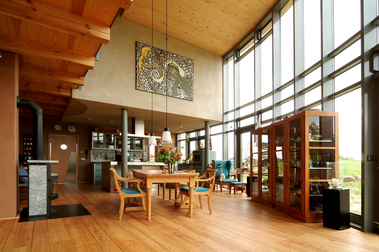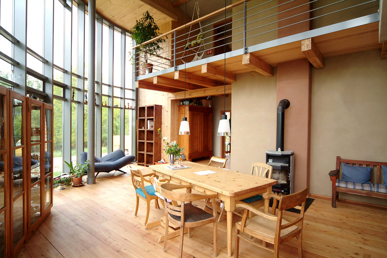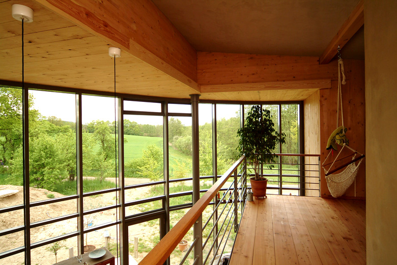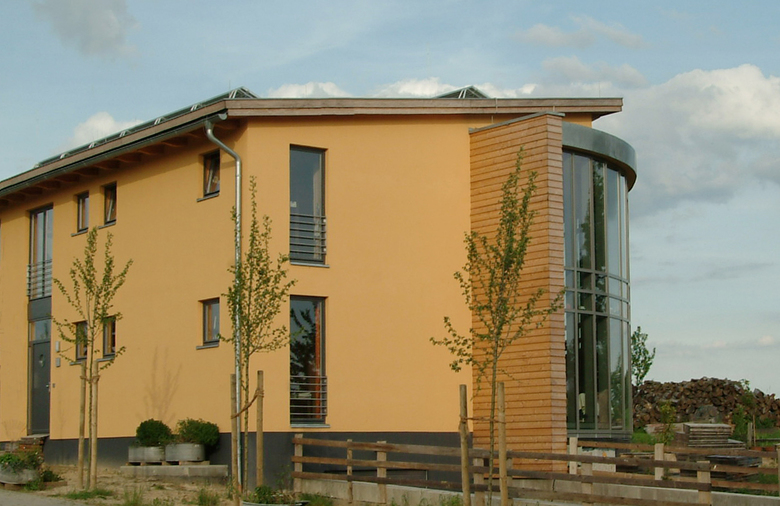 Hauptaugenmerk lag auf der bevorzugten Auswahl von nachwachsenden Rohstoffen regionaler Herkunft, worin sich die Naturverbundenheit des Bauherren widerspiegelt. So wurde beispielsweise der in der Baugrube gewonnene Lehm von einer ortsansässigen Firma aufgearbeitet und in warmen Farbspielen als Lehmputz aufgebracht.