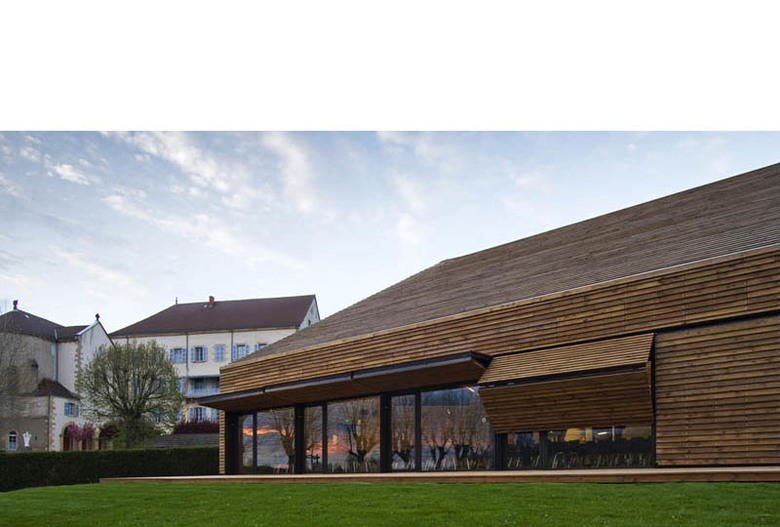 The new volume is built in the way the old wooden barns in La Bourgogne were built: the different sides and faces are supported by a braced structure witch becomes sheathed. It is a dry construction, half prefabricated and dismountable, willing to recuperate the social character of the rural constructions.