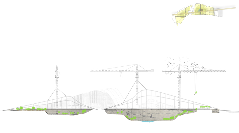 In this speculative section of the thesis, I propose an investigation into an alternative programme for the two unfinished buildings in the City of Culture. I propose a landscape design to experiment with architectural principles that Eisenman developed for the building programme. It proves how landscape design methods are applicable to architecture.