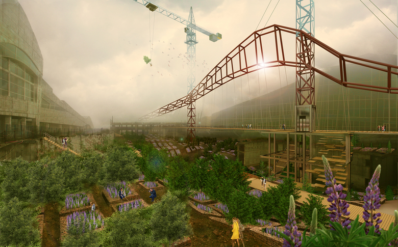 The proposed Galician Forest Garden is temporary. It enhances natural and cultural riches of Galician flora. The alternative core is a place for temporary urban farming. A tree nursery is developing local species to enhance forestry culture of Galicia and further parts of the Iberian Peninsula. A larger scale issue of mislead land use culture, that leads to frequent bushfires in the region, can be attacked on a research level.
