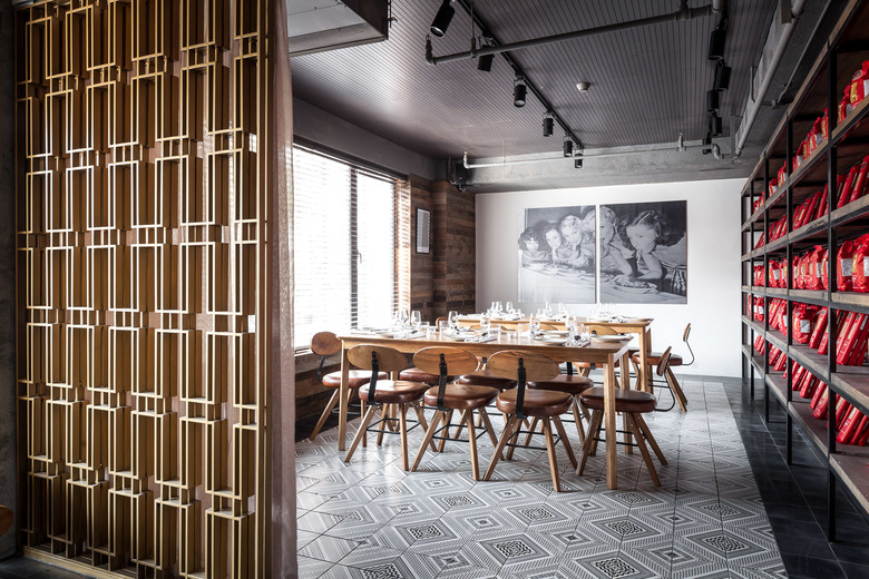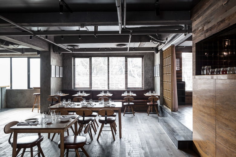 Located upstairs from a busy street, Osteria de Gemma is Italian restaurant crazy about pasta. A warm earthy color palette with natural finishes. The space includes a bar, formal dining and private function space. An open kitchen adds to the warm ambience, with the feature pasta room amongst the dinners creating movement and flair.