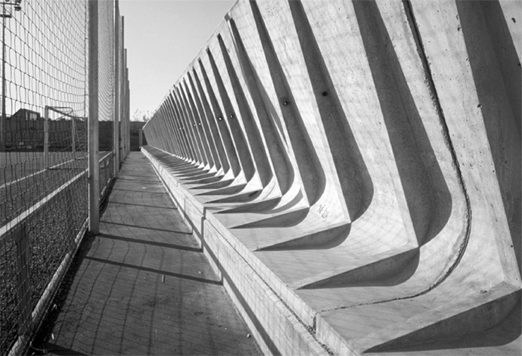 The project is conceived as a performance landscape in the region where the flatness of the field coexists with the sinuosity access road that provides a dynamic visual pedestrians by changes in the levels is. It is experienced also with the expressive power of a piece of prefabricated reinforced concrete L-shaped bent. Its original use is the formation of irrigation canals in the western regions, and is used here to define different limits and closures, taking advantage of his ability as a container lands proposed slopes.