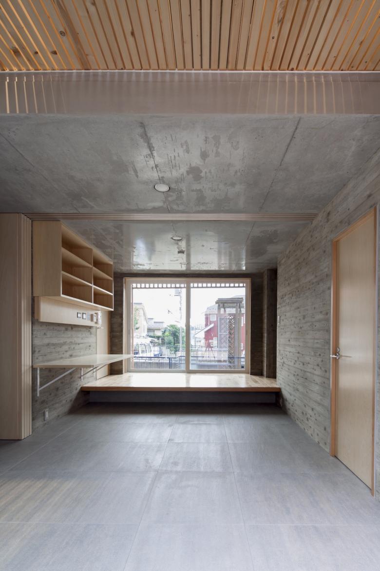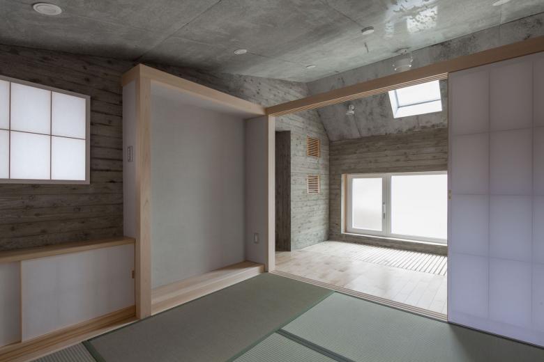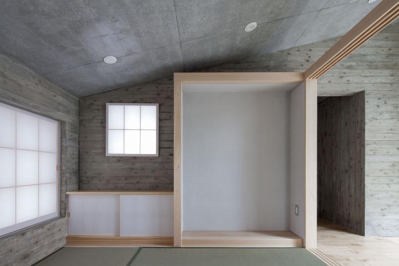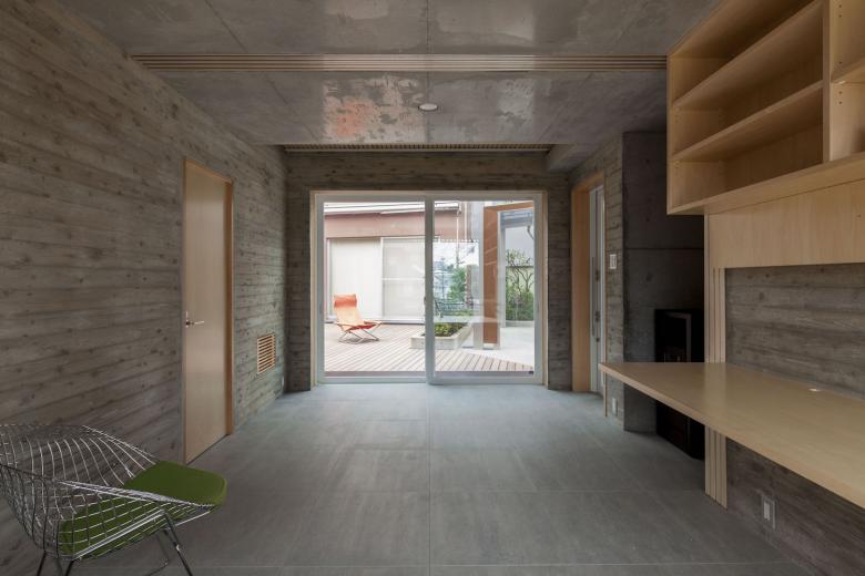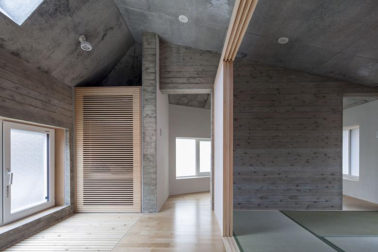 方位、敷地前面の道路、隣地の母屋との関係から導き出した外形を、RC外断熱とトリプルガラス樹脂サッシにより構成した、高い断熱気密性能を持った建物外皮とし、周辺環境と遮断した内部空間に熱的なバリアフリー環境を作り出したうえで、敷地内で得られる限られたエネルギーを、効率よく使いきるために、生活に必要な要素を【取り込み】、【留め】、【使う】循環を提案しました。