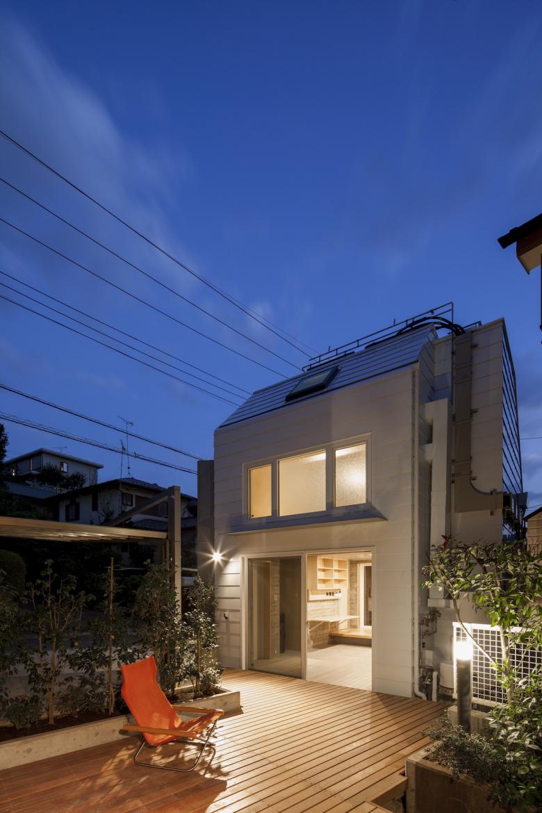 東京都町田市に建つ夫婦2人のための住宅です。電力網に接続せず、太陽光発電パネルによって、電気を自給自足する「オフグリッドハウス」として計画しました。 同じ時期に計画が進んでいた、小高町の家(横浜のオフグリッドハウス)では、キャンプのような屋外生活の延長にある、少し特殊なライフスタイルへの回答として、オフグリッドハウスを選択したのに対し、この成瀬の家では、住宅密集地における、エネルギーと生活の在り方を示し、ZEHの性能をクリアしたオフグリッドハウス、いわば少し未来の一般解としての住宅の提案が求められました。