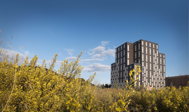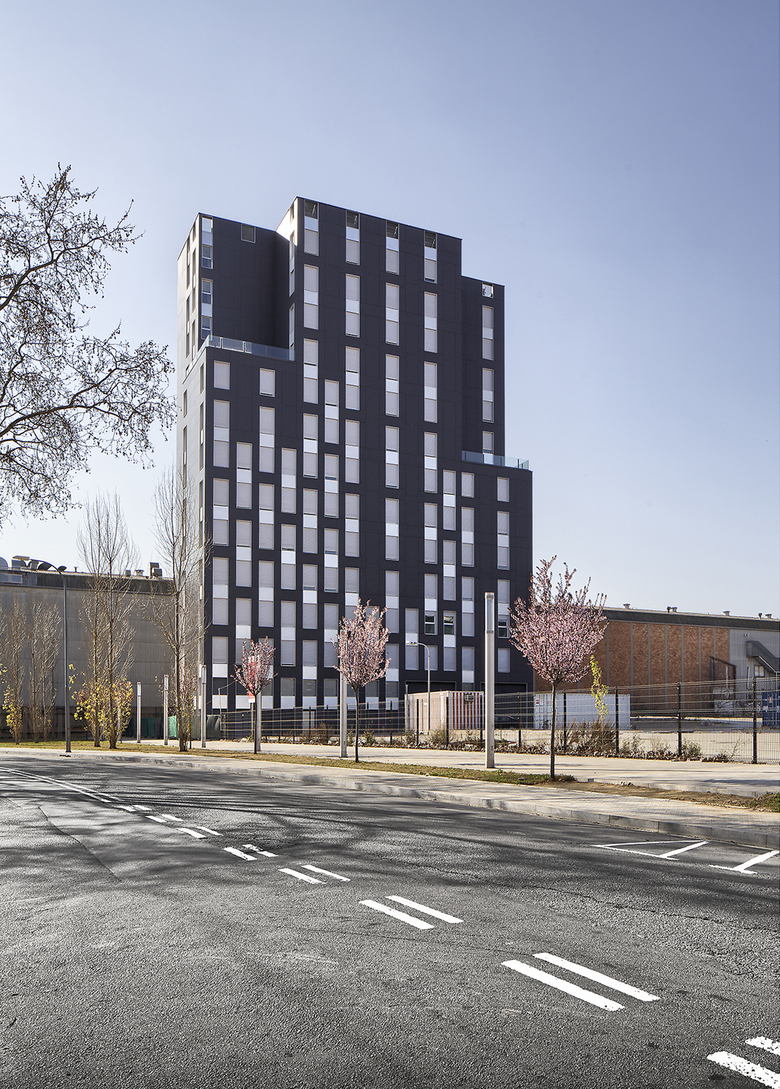 El proyecto, destinado a viviendas de promoción pública en régimen de alquiler para jóvenes, está emplazado en un solar situado en la Zona Franca de Barcelona, en una antigua manzana industrial transformada en conjunto terciario, el «Distrito 38 Barcelona. Área de negocios».