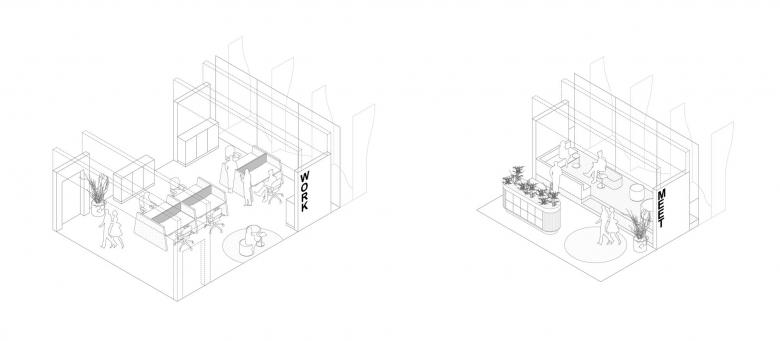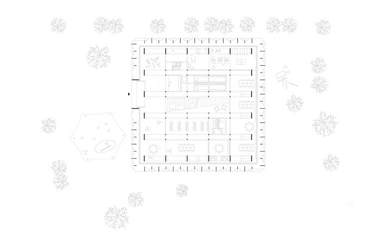 Die Deckenplatten können hinzu- oder weggeschaltet werden. Eine Scherentreppe im mehrgeschossigen Atrium verbindet die Etagen kommunikativ und dient als Herz der Anlage. Die Fassadenlamellen schaffen einen begehbaren Filterraum zur heterogenen Umgebung des Industriegebiets von Amstetten, dienen als Sonnenschutz und geben dem Ort seine unverwechselbare Identität.