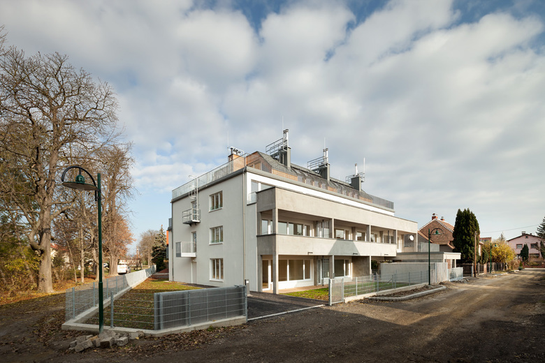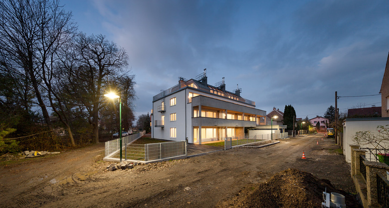 Das realisierte Wohnhaus ist in Korneuburg im südlichen Stadtteil situiert. Das Eckgrundstück ist zweiseitig von öffentlichen Straßen begrenzt. Der Flötzersteig erscheint als Sackgasse, da die Straße parallel zu den Bahngleisen nicht asphaltiert ist, ein Grünstreifen mit Bäumen trennt die Straße von den Bahngleisen.