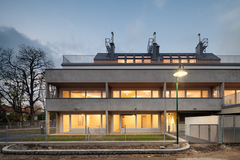 Das Wohngebäude weist 11 Wohnungen auf und ist in offener Bauweise errichtet. Das Gebäude ist nicht unterkellert, die Einlagerungsräume sind auf der Erdgeschossebene geplant. Der östliche Bauteil überragt die Parkplätze und bietet einen überdeckten Fußweg zum Eingang des Gebäudes.