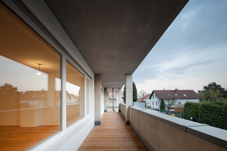 Durch eine verschränkte Anordnung der internen Stiegen konnten 4 Wohnungen ein Teil des Dachgeschoßes und somit auch der Terrassenflächen zugeordnet werden.
