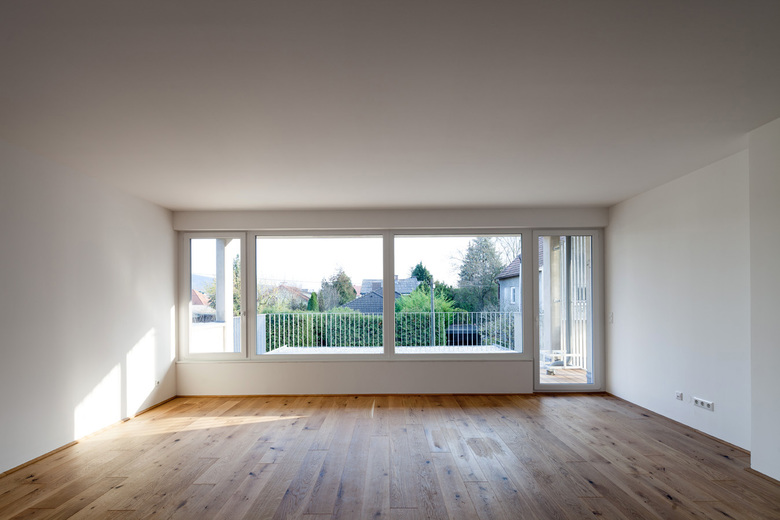 1.OG, 2.OG und Dachgeschoss: tragende Wände weitgehend und Decken durchgehend Brettsperrholz mit außenseitiger Dämmung und Verputz.