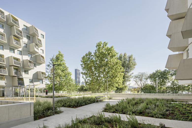 Karlheinz Hora Hof mit Gartendeck und Donaublick für alle