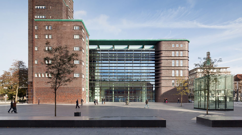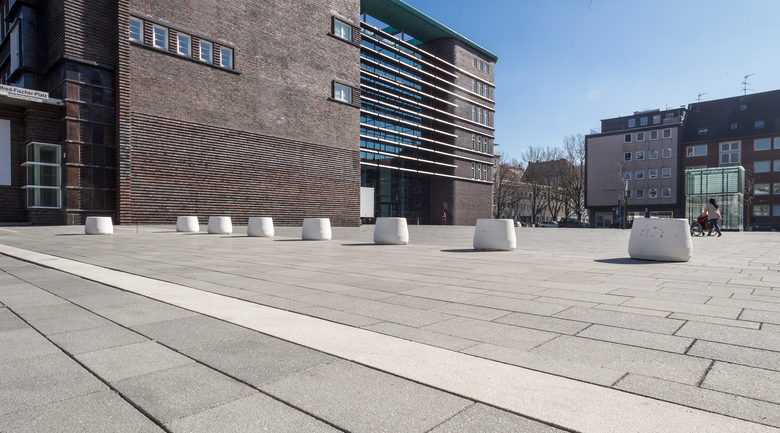 Nach vier Jahren Bauzeit weiht die Stadt Gelsenkirchen 2013 ihr neues Rathaus ein. Der Umbau des historischen Baudenkmals erfolgte nach den Plänen der Architekten von Gerkan, Marg und Partner (gmp). Der Abriss des Ergänzungsbaus aus den des in den 1950er Jahren und der Rückbau der Dreikronenstraße erlaubten die Entstehung eines dem Hans-Sachs-Haus als Rathaus zugeordneten „Bürgerplatzes“. Der Hotelturm des Hans- Sachs-Hauses wird wieder freigestellt. Er wird so zum städtebaulichen „Objekt“ auf dem neuen Bürgerplatz. Zwei lange Sitzblöcke aus anthrazitfarbenem Beton sowie Schnurbäume als Solitäre bilden die wesentlichen Elemente auf dem mit hochwertigem dunklem Betonsteinpflaster gestalteten Platz. Dieser öffentliche, städtische Platz findet seine Fortsetzung im Inneren mit dem multi-funktionalen Bürgerforum im Zentrum des Erdgeschosses. Das Forum wendet sich großzügig dem besonnten Bürgerplatz zu, so dass für Festveranstaltungen bei gutem Wetter die Westfassade geöffnet werden kann. Der mögliche fließende Übergang zwischen Innen- und Außenbereich stärkt besonders den Eindruck eines „offenen Hauses“ für den Bürger