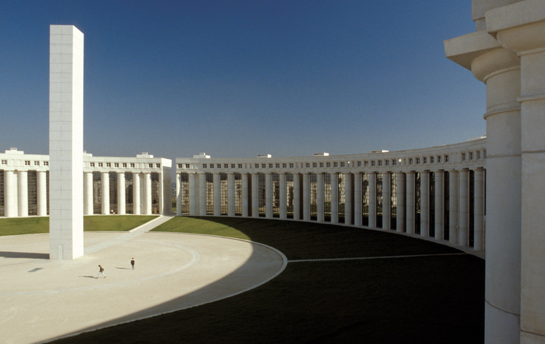 Conjunto residencial, situado en la Ciudad Nueva de Cergy-Pontoise, al Noroeste de París, sobre la meseta de Le Puiseux desde la cual se domina el valle del río Oise y se divisa la silueta del barrio parisino de La Défense. El edificio principal, en forma de columnata, surge en el punto de intersección del eje principal del nuevo barrio con el trazado de parques y jardines que desciende hasta el río. En medio se levanta un obelisco, obra del escultor Dani Karavan, marcando, por la noche, el eje de los jardines mediante la proyección de un rayo laser. El carácter monumental de la plaza, completa antítesis de lo que hasta entonces habían sido las viviendas sociales, la ha convertido en el lugar de encuentro de los habitantes, lugar donde se celebran todas las actividades lúdicas y representativas de la nueva ciudad. Las dos plazas interiores cuadradas que completan el conjunto, de escala más íntima, han sido tratadas como pequeños claustros ajardinados.