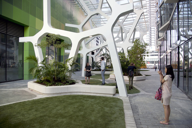 It feels lush and green here, a warm city garden, a place where one might choose to be; a big urban lounge even, and a type of back yard. A little dark at times perhaps, but beautifully lit in the evening. It is both interior and exterior, just breezy enough, and nicely protected overhead.