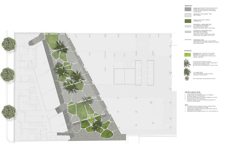 The project is the first stage of the public realm for this site, where in future the design will extend the Wintergarden from Swanston Street, westwards to Bouverie Street. The owners of the adjoining sites are also already exploring how to extend the design aesthetic to new plaza spaces on the site, and to create the final, integrated network of public spaces. This is a key requirement of the site Masterplan, in review by DELWP as new applications emerge.