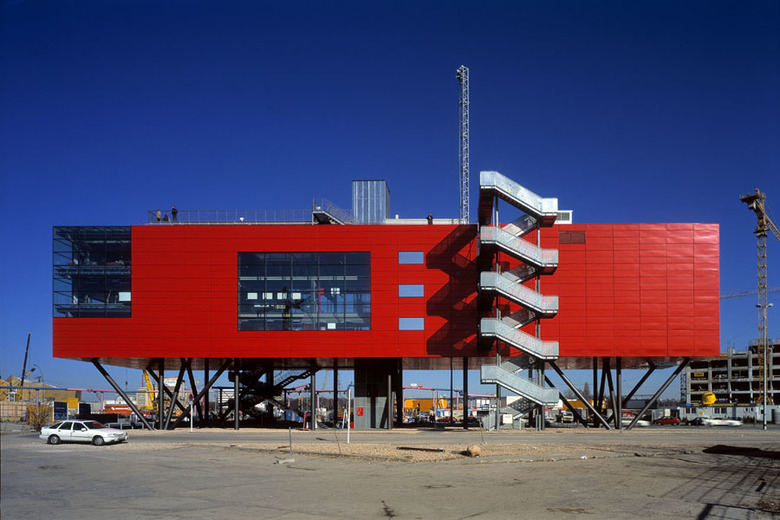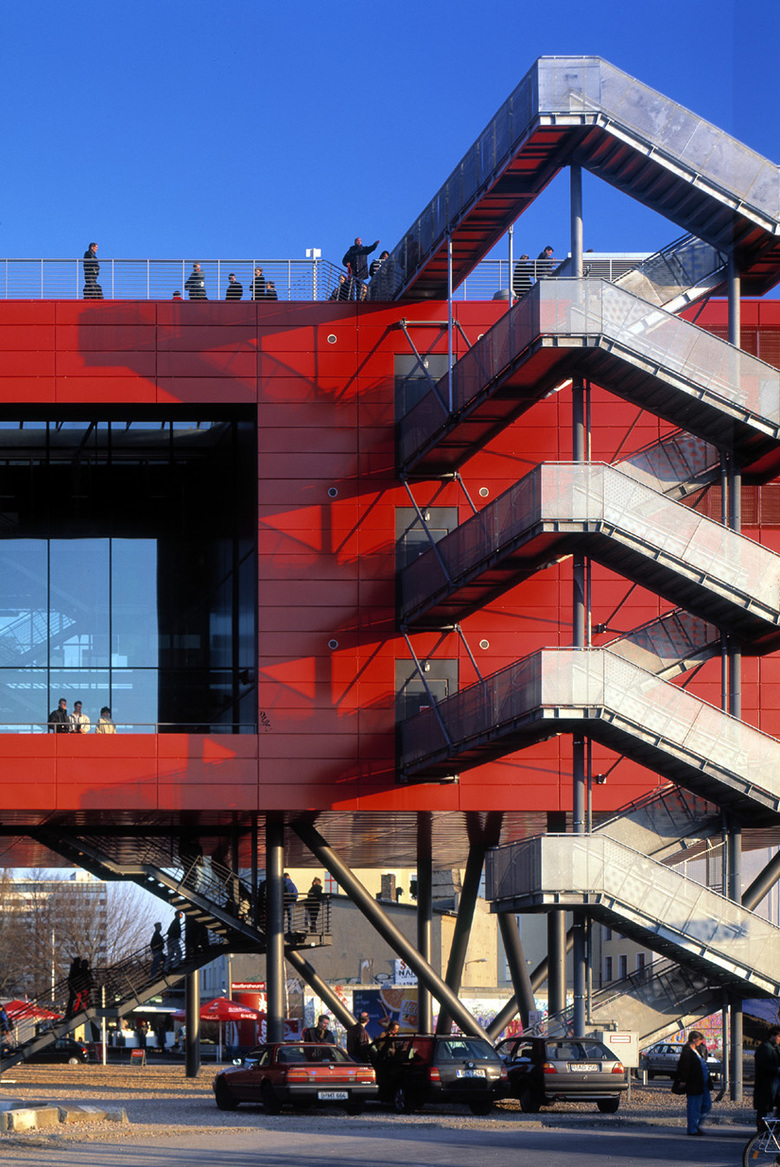Ausgangspunkt war ein eingeladener Wettbewerb, den die Senatsbauverwaltung Berlin zusammen mit den am Potsdamer Platz bauenden Investoren wie Sony und Daimler Benz im Oktober 1994 auslobten. Ziel war, einen Entwurf zu finden, der dem weltweiten Interesse an den baulichen Veränderungen im wiedervereinigten Berlin entspricht. Einen Informationspavillon, in dem die Investoren ihre jeweiligen Bauvorhaben mit Modellen, Computeranimationen und Plänen vorstellen konnten. Das Konzept, das den 1. Preis errang, schlug ein temporäres Gebäude vor, dessen Eigenheit und Originalität sich klar von den Gebäuden absetzt, die in der Umgebung errichtet werden. Die knallrote Kiste ist prägnant und leicht zu identifizieren, ist eine einfache und zugleich kraftvolle Geste, die sich mit ihren Stelzen vom umtriebigen Chaos der größten Baustelle Europas mit unzähligen Kränen, Gerüsten, Baumaterialien und Straßensperren abhebt und in ihr behauptet.