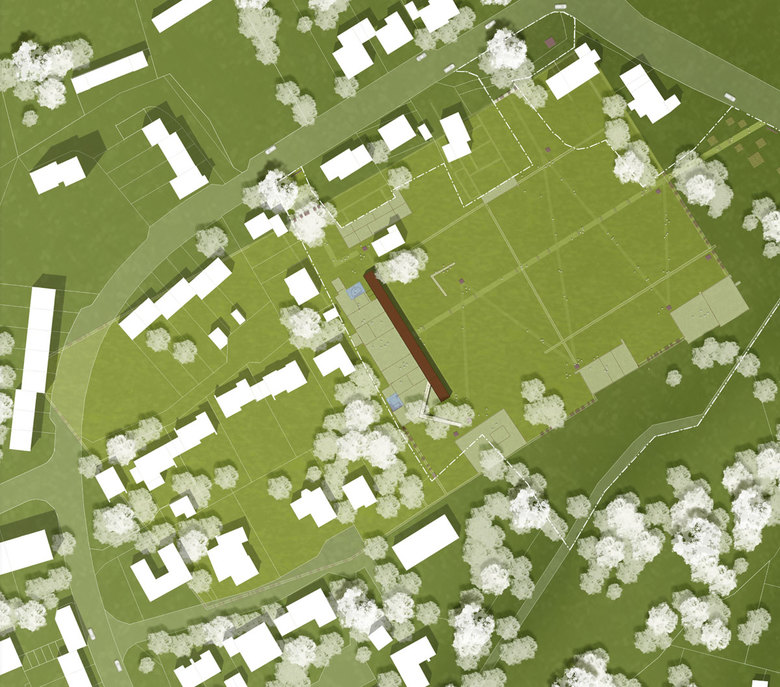 Der Porticus des historischen Hauptgebäudes wird als schlichte aber sehr feine und präzise Konstruktion in seinen ursprünglichen Abmessungen und an dem historischen Ort errichtet.