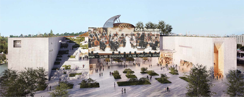 取下げられた。その後、建築家ジャン・ヌーヴェル氏をコンサルタントとして迎え、