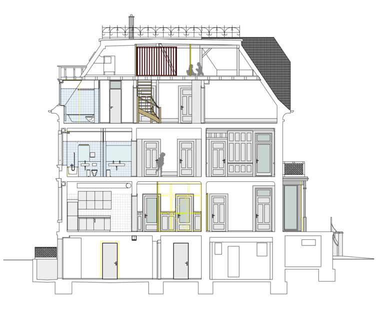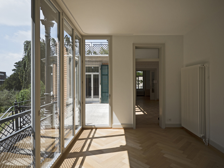 Die denkmalpflegerisch wertvolle Backsteinvilla, 1886 für eine Zürcher Industriellenfamilie erbaut, wurde bereits 1945 zu einem Kinderheim umgebaut und seither mehrmals durch kleinere Eingriffe und Anpassungen verändert. Die notwendigen Erneuerungen der Haustechnik und die Anpassungen an die aktuellen feuerpolizeilichen Vorschriften wurden so ausgeführt, dass die ursprünglichen Raumstrukturen und Oberflächen wieder sichtbar wurden.