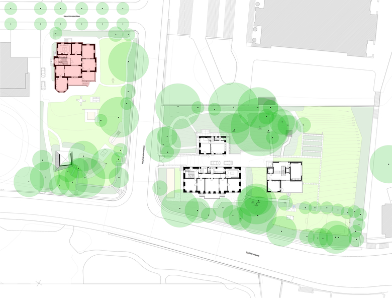 Die Stiftung ZKJ legt ihre zwei bisher getrennten Standorte für die Krisenintervention neu in Riesbach auf zwei benachbarten Liegenschaften zusammen. An der Neumünsterallee 16 wohnen die jüngeren Kinder, während die älteren Kinder gegenüber an der Neumünsterstrasse 2 wohnen und alle zusammen im dort neu erstellten Schulhaus zur Schule gehen.