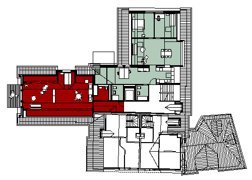 Einbau von vier grossen Wohnungen sowie Räumlichkeiten für eine Primarschule in ein Gewerbegebäude in der Kernzone von Zürich Albisrieden.