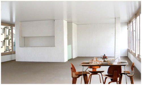 mit den Schlaf- und Nebenräumen. Das Freistellen der Fassade schafft loftartige, räumliche Grosszügigkeit.