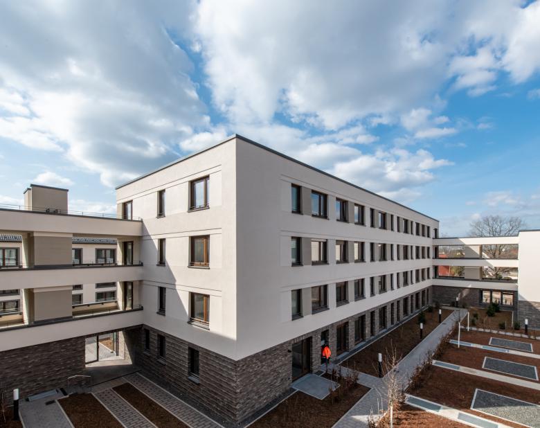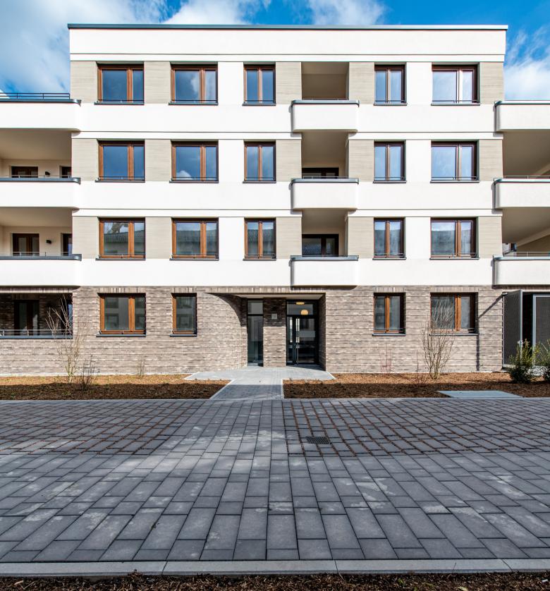 Im Auftrag der GWH Bauprojekte GmbH entstanden zwei Karrees mit insgesamt 155 Wohnungen, ergänzt um die Sanierung eines bestehenden Kasernenbaus mit 12 Wohnungen. Der Entwurf der Neubauten entwickelt die Idee des städtischen Blocks mit geschützten Innenbereichen zur freien Benutzung und Aneignung durch die Bewohner weiter. Durch die Transformation des Blocks, der immer wieder durch transparente Loggien unterbrochen wird, werden Einblicke in den grünen Innenhof ermöglicht ohne die Geschlossenheit des Baukörpers aufzugeben. Die Ensemblewirkung wird durch einen umlaufenden, alle Gebäude verbindenden Klinkersockel verstärkt.