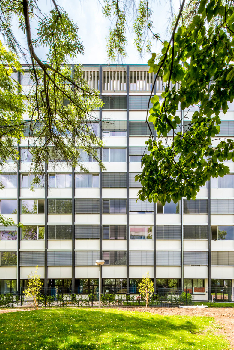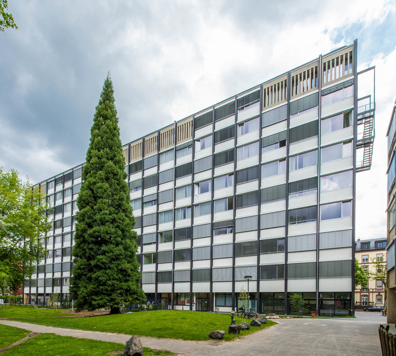Das denkmalgeschützte Philosophicum, ehemals Sitz der philosophischen Fakultät der Frankfurter Goethe-Universität und für diese zwischen 1958-1960 im Stil des Funktionalismus von Ferdinand Kramer erbaut, blickt heute auf eine bewegte Geschichte zurück und gehört zu den meistdiskutierten Bauwerken in Frankfurt am Main. Der neungeschossige, knapp 80 Meter lange Stahlskelettbau mit einer Tiefe von nur 10,58 Metern wird nach dem Umzug der Universität an den neuen Campus Westend zu einem Studentenwohnheim transformiert. Verteilt auf den Altbau und einen Erweiterungsbau entlang der Gräfstraße entstehen insgesamt 238 Studenten-Appartements, eine Kindertagesstätte und ein Café im Erdgeschoss. Der fünfgeschossige Anbau an der Gräfstraße greift mit der Aufnahme von Bauflucht und Traufhöhe der Nachbargebäude das Thema des Blockrands auf und gewährleistet die bisher vermisste Integration der Nachkriegsarchitektur in den Stadtraum. Die denkmalgerechte energetische Sanierung ermöglicht den Erhalt eines der bedeutendsten Baudenkmäler der Nachkriegsmoderne mit ihrem prägenden äußeren Erscheinungsbild.