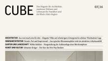 In seiner aktuellen Ausgabe präsentiert das Architektur- und Lifestylemagazins Cube unser Wohnhaus Schloßstraße: „Der klar artikulierte Baukörper vertraut auf die primäre Wirkung von Farbe, Materialität und Proportion und interpretiert so die Lage am Von-Bernus-Park neu“.