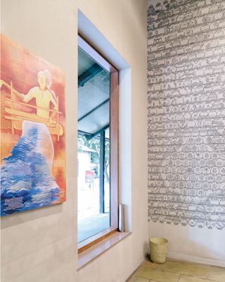 Modular and easy to reconfigure Mild Steel and timber display systems, which span tall vertical surfaces in some places, effectively hold the varying nature of craft objects and textiles.
